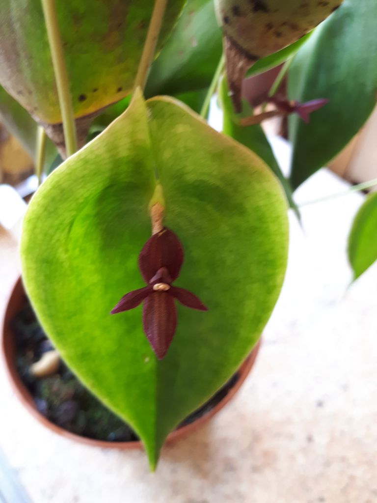 A Cymbidium and a very striking Pleurothallis gargantua: