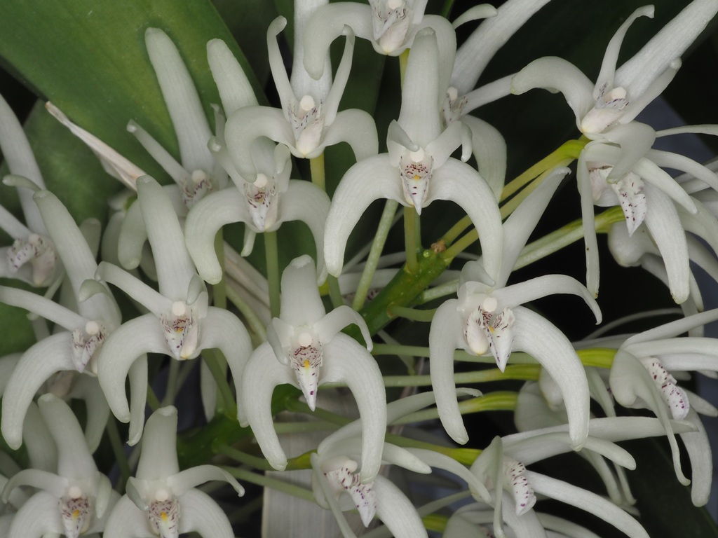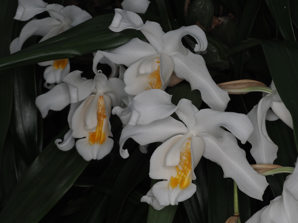 Dendrobium speciosa and Coelogyne cristata, covered in flowers in March 2021: